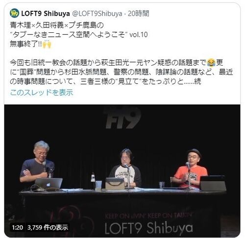 1年ぶりに「タブーなきニュース空間へようこそ」(8/18)の 有料配信ライブを見る。なんたって今回はテーマが盛りだくさん。 統一教会、東京五輪汚職、安部元首相狙撃事件、国葬の賛否、 萩生田ヤンチャ伝説、杉田水脈政務官就任・・・ こんなに盛り沢山なネ…