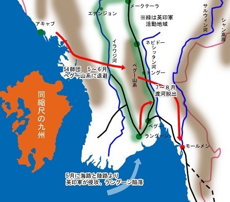 日本軍と在留邦人はペグ―山系に退避した。この時、軍を指揮すべき方面軍の