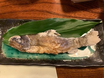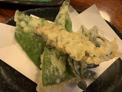 天ぷら。一番上は山椒魚の天ぷら