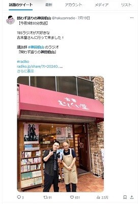 突然TBSラジオ「問わず語りの神田伯山」のFacebookに